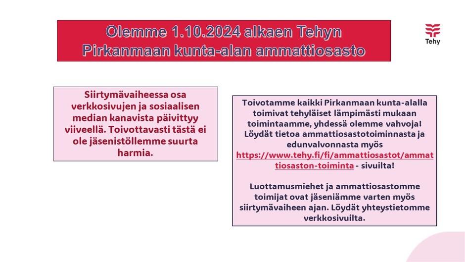 Olemme Pirkanmaan kunta-alan tehyläisiä (23 kuntaa/ kaupunkia) - pääosin varhaiskasvatuksen lastenhoitajia ja koulunkäynnin ohjaajia.